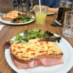 We went to Petite Versailles for baguette sandwiches and then we went to Boulangerie de Marais where we got French desserts. I got a chocolate eclair. For dinner we went to La Maison Breton where we had savory gelmzttes and sweet crepes. My savory one was egg and cheeks with a third ingredient of choice, different kinds of meet and onions were mentioned. For sweet, Nutella was quite popular.