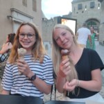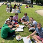 Today we slept in and I woke up around 10AM. We had Nutella on toast for breakfast and after that we got ready to go. We went to a picnic spot and ate lunch with two other families then went to a different spot with the other families. We all hiked for a while and saw sculptures in the wilderness. The views were beautiful but it was very hot out. After the hike we went to the castle and walked around. I had chocolate ice cream that was very good. When we finished walking around we went back to our host house.