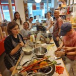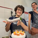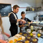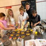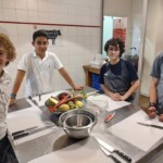 Next, we headed off to our cooking class! Once there, we got into four groups and started cooking. Each group made two dishes and presented them to everyone. Once everyone was done with their presentations, we enjoyed a big feast. The food was amazing! We got to vote for the best dish and sadly, our group did not win. After our cooking challenge, we headed off to another park, Jardins de Palais Royale. There, we ran over some scenarios of what could happen when we are with our host families. These skits allowed us to practice some new French vocabulary and problem solving skills.