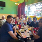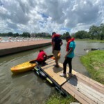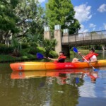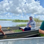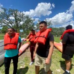After we got refreshed, we moved to the Kayaking activity, which is moving through water in a small water vessel with the aid of a double-bladed paddle. It was the first time to do kayaking for most of us. Therefore, it was hard for us to balance in the beginning. We were about to fall more than one time, and we hit the edge many times. Then our best coordinator, an expert in kayaking, taught us how to kayak and balance. Then we went kayaking around the park together. In the middle of the park, we started a funny and enjoyable race. After that, we were starving, so we went to a popular Mediterranean restaurant called Mona’s Café. It was the best restaurant we have tried in New Orleans, especially its lamb shish kebab. Next, we returned to our cabins at 5:40 pm. When we arrived, a magnificent rainbow was waiting for us, and we took many pictures with it. Finally, the girls cooked different kinds of delicious meals and we all enjoyed dinner together.