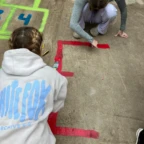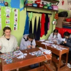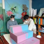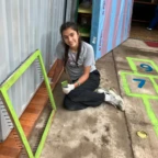 Everyone got involved in different ways! Some of us were cutting and laminating learning materials, others were painting windows to brighten up the classrooms, and a few people worked on making foam stairs for the kids.