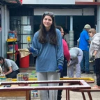 We gathered as a group in the plaza and made our way to the school we had visited last Monday. There, the work began. Some painted shelves and chairs, others constructed stairs, and a few focused on cutting and laminating educational materials. Each project helped support the school’s mission to create a more engaging and supportive space for its students.
