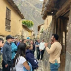 Soon, we boarded the train headed for Ollanta, and once on the train, we trained for our homestay by going through possible situations that could arise. Once in Ollanta, we went on the bus and searched for things all the way from a 40 km/h sign to a red tuk-tuk on the 40 minute ride to Calca. Soon, we arrived back in our hotel to retrieve our suitcases and finally meet our host families! To break the ice, we played a fun game trying not to spontaneously look another person in the eye after being arranged in a circle and quickly lifting our heads to look at somebody else. Once inside, we used a sort of circumlocution description activity to describe which animal we had so that we could find out who was our host family. It was super cool getting to see people of all ages getting to know one another, and I am very grateful for how hospitable and caring our host family has been so far, and we are looking to starting our service tomorrow!