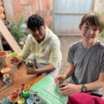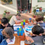 After our fun project we headed to our host families for lunch. We hung out and played games with them until we had to go. After lunch, we went to one of the host families houses for t- shirt printing. Everyone picked out a t – shirt and a design. Today was all full of painting and patients. We had a ton of fun doing this project and everyone enjoyed spending time with one another.