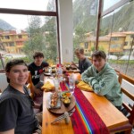 Today we woke up and had a wonderful breakfast provided by the hotel. Breakfast had to be brief because zip lining awaited us. We were picked up by vans from the zip lining company and taken to the location approximately 45 minutes away from the hotel. After 20 minutes of gear checks and an hour of hiking we finally reached the first zip line. There were seven zip lines in total and the third one was by far the longest one stretching over half a mile. Zip line itself just as long as hiking, but I do not think anyone in the group was complaining about a little extra zip lining. When we got back to Basecamp, we had to leave pretty quickly for the town called Ollantaytambo. We had some time for shopping! Many people bought items such as alpaca fur blankets or hats and everyone got a great chance to show off their bargaining skills in Spanish. Lunch was at a restaurant conveniently named Ollantaytambo. At lunch, we met another guide from Global Works named James. James grew up right there in Ollantaytambo. He showed us around his hometown. Then we took a train from Ollantaytambo to Aguas Calientes, the town below Machu Picchu. Dinner came after we checked into our hotel and settled down. A three course meal was provided to us and included many different options. Full and content, we went back to the hotel and turned in for the night.