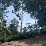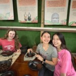 Yesterday we woke up and went upstairs to a delicious hand made breakfast contained of fresh bread, hot chocolate and some fruit. After breakfast, we got into pickup trucks and drove one way dirt roads to zip lining. We drove up the long windy road to the zip lining place in the forest. They gave us our harnesses and taught us how to properly zip line. After a quick safety demonstration, we were ready to hit the lines. Zip lining gave us an amazing rush of adrenaline as well as an amazing view of the rainforest. After our 3 zip lines, we got back into the trucks and drove over to the cable car. We got into group of 5 or 6 then went on. There was one car, and it took about 1 minute to get across. The views and organic AC were amazing. After we got across we started our descent to the river. After and 20 minute hike down, we reached the river. We stood on a bridge and looked and the fast water and huge waterfall. A couple minutes later, some kids went into the river barefoot. After this experience, we started our hike back up the mountain. It took a bit longer with a couple more stops along the way. After a half an hour, we got to the took and headed back on the cable car. We road back down in trucks and headed to the butterfly center. We spend some time looking at cool butterflies. Some people took their butterflies on their hand. The group took some cool photos. After a car ride back to the hotel, we got some lunch. The options were beef, chicken and trout. It was “Muy Rico”. After lunch we had an hour of down time. Some people played Poker with m&ms. Others just chilled in the common area. We then went to the chocolate factory to make hot chocolate and chocolate bars from scratch. We roasted the cocoa beans and then shelled them and crushed them up. To get the smooth hot chocolate we were used to you had to hand crush it into a fine powder. Some people made the crushed up chocolate into face masks and soon almost everybody had chocolate on their faces. For dinner we had veggie pasta, beef, or chicken. After we did a secret Santa thing with presents and everybody gave and received something. 10 minutes later, a dancer came and taught us salsa and some classic, local dances.