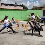 This morning, we woke up at around 7:30 and had breakfast with our homestay families around 8:00. A lot of us ate bread, eggs, and drank juice. All of the Weston Kids with chaperones met back at the school after breakfast at 8:30 to start our service work. When we got to the school we then quickly started back up again at painting. Today, we continued painting the window bars black, painting one of the classrooms green, and some of the the outside walls blue. Around 11:30 we took a snack break, drank lots of water and reapplied sunscreen. After snack, we went back to working around 12:15. The people who were painting the green room continued that, but people who were painting the black bars got to switch over to painting hop scotch on the cement. This was mainly because doing the black bars was a long and tedious job, so we only thought it was fair to give them the easier and more fun job to end with. We split up into groups of 3 or 4 to paint multiple hop scotches on the pavement. We made the hop scotches more colorful and vibrant so it is a lot more appealing to kids and their tfamilies. We started to wrap up painting around 1:00, but cleaned brushes and put covers over the hop scotch to dry until around 1:30. After we finished cleaning up, we headed to our home stays for lunch. Most of our families had already eaten lunch before we got there because we were on the later side today. Most of us ate soap, rice, and some sort of meat with juice on the side. After lunch, we hung out and played games and soccer with our families. Shortly after, it started down pouring and storming, so we stayed inside until it was time to meet back at the school. At 3:00 we headed back to the school to swap groups for leather making and beading workshops. During beading, we made necklaces, bracelets, earrings, etc. At the leather workshop, we learned how to make different types of handmade leather wallets. We also learned how to sue them together which was a really cool experience given that most of us have never done that before. Since a lot of people didn’t finish their wallets yesterday, they stopped beading early and came over to the leather workshop to finish their wallets. Right next door there is a convenience store, so many of us went in there to go buy some ice cream and treats to enjoy while making wallets. After everyone was starting to finish up their wallets, Sra. Mongiello and Fabri gave us an outline of what we are doing tomorrow. It is really hard to believe that this is our last night with our homestay families and many if not all of us are very sad to leave our families. Once both people in the homestay were done with their wallets, they were allowed to leave and go back to their home stays for dinner. When we all got home to our families we ate dinner with them. We also played lots of games with the kids in our families which was a really fun time. It was a really nice chance to bond a little bit more with our families especially considering that it is our last night with them. Then when we all got tired we took a shower, packed up our stuff for tomorrow, and went to bed.