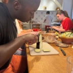 We kicked off the day with a lazy sleep-in until 9 AM—which was such a nice change of pace after having a few late nights. After getting ready, we headed to the farmers market and found this amazing Moroccan bread that was unbelievable. It was soft, warm, and perfect. We also grabbed some fresh produce, then sat at a café in the town center to chill in the shade and drink water. After a while, we walked over to a spot just outside the castle for a picnic with Gavin and Emma’s host family, where we dug into the food we’d picked up, I had too much food to say the least. The turkey was surprisingly juicy unlike every Thanksgiving dinner my family has had – low key it was the best turkey I’ve ever had.