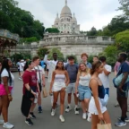 After waking up early Ben and I went on a walk while Cooper and Jack went on a run along the Seine. Before going on the walk/run, me(Victor), Cooper, Justin, Ben, and Jack played card games and gambled euros (we didn’t actually gamble euros I’m just saying that for effect). At around 6:45 we all went down to the lobby and ate breakfast. When we got back we started the walk to the metro. We walked for a while to get to the Eiffel Tower and went to the 2nd floor, it was high up. After going down the Eiffel Tower we went to lunch at Jardin de Tuileries. It was very tasty and my table mates and I had a good conversation (I have no idea what it was about). After lunch we went to the louvre and saw art, the Mona Lisa, and had cultural interactions (I went and talked to an Italian girl). After around 2 or 3 hours we went to dinner but I fell asleep so I have no clue what happened but I remember eating. It was really good. We went shopping in Montmartre and listened to live music on the steps of the sacré cœur. We went to the hotel and had to move our beds from the hot upstairs and I fell asleep right away.