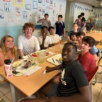 Today was a very eventful day. This morning we started off our days with breakfast with our host families. We then met up at a french middle school at around 8am (with varying times) to begin our authentic french “college” journeys. We began with a tour of the school, which included several interesting aspects that both are similar to and are different to our high school experiences in the United States. Following a refreshing cup of orange juice, we quickly learned that french middle schoolers surprisingly enough look up to americans – as they were very interested with our presence there. As we were attending classes, everyone faced various experiences, from falling asleep during a lesson to making new friends. We then headed up to the cantine for lunch, where pasta and salad, along with ice cream and an optional container of vanilla yogurt was on the menu. After a long day of working hard in our classes (and working even harder to shoot the children with water guns), we all ventured outside for a different form of dodgeball where there was only one ball and those who were out were allowed to attack. It was definitely very competitive, despite the schoolchildren being as small as they were. We then exchanged our goodbyes with the french children and ventured to the Carcassone city square, where we had our daily ice creams and were given our free time to shop. We were also given the opportunity to sit down at the cafe as well to chill. Everyone chose the chill option. To end our journeys, we were picked up by our host families for downtime and dinner, followed by bedtime after our very eventful day.